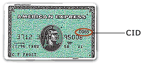 For American Express: The Card Identification Number is the 4 digit, non-embossed number printed above your account number on the face of your card. This number is recorded as an additional security precaution.